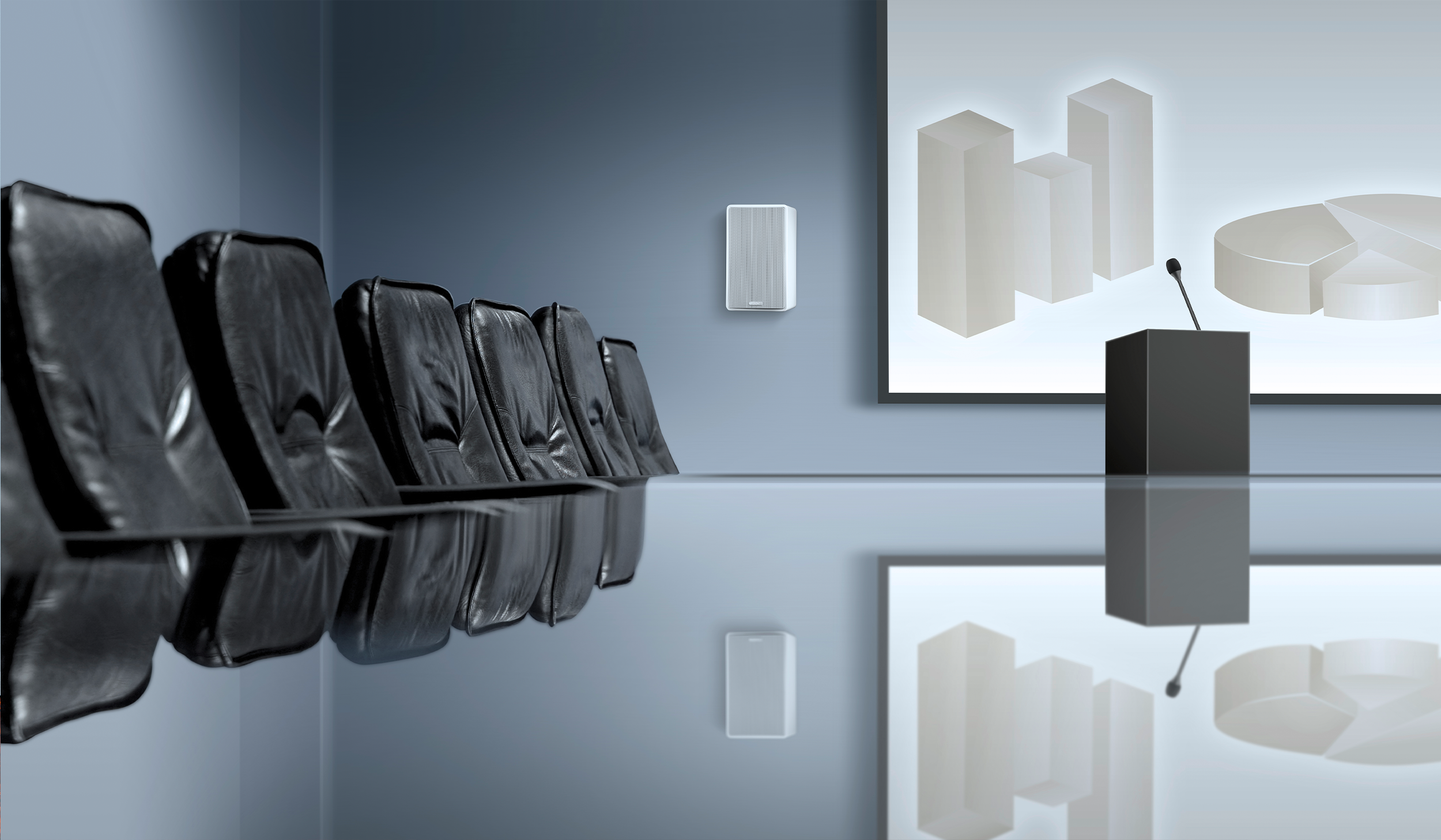 With its high speech intelligibility, the AM5 cuts a fine figure in conference rooms, presentation setups, and conference calls. The switchable high-pass filter reduces low-frequency interference such as room reverberation, air conditioning, or handling noise. Multiple AM5s can be combined as needed to evenly fill different room sizes with sound. Connection and sound control are deliberately kept simple – perfect for stress-free business use.
