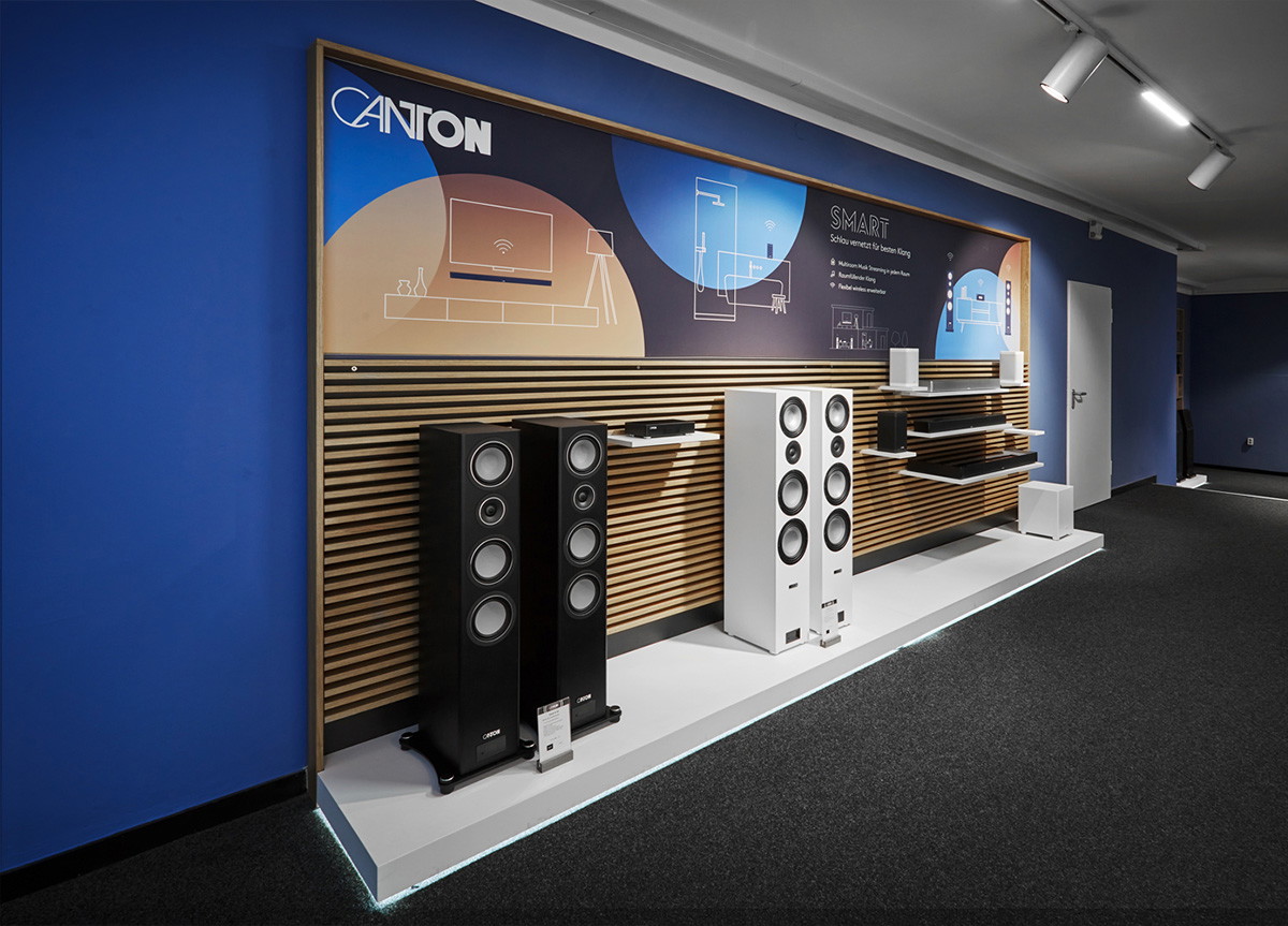 In our two acoustically optimized studios, you can experience the entire Canton range – from compact bookshelf speakers to impressive high-end systems. In the stereo studio, you’ll encounter pure sound culture: listen to everything from the GLE series to the Reference Alpha – precise, detailed, and natural. In the Smart & Home Cinema studio, discover our modern solutions for connected music and movie enjoyment – from soundbars to complete surround setups. Both rooms are finely tuned to let you compare each model objectively and truly hear the differences.
