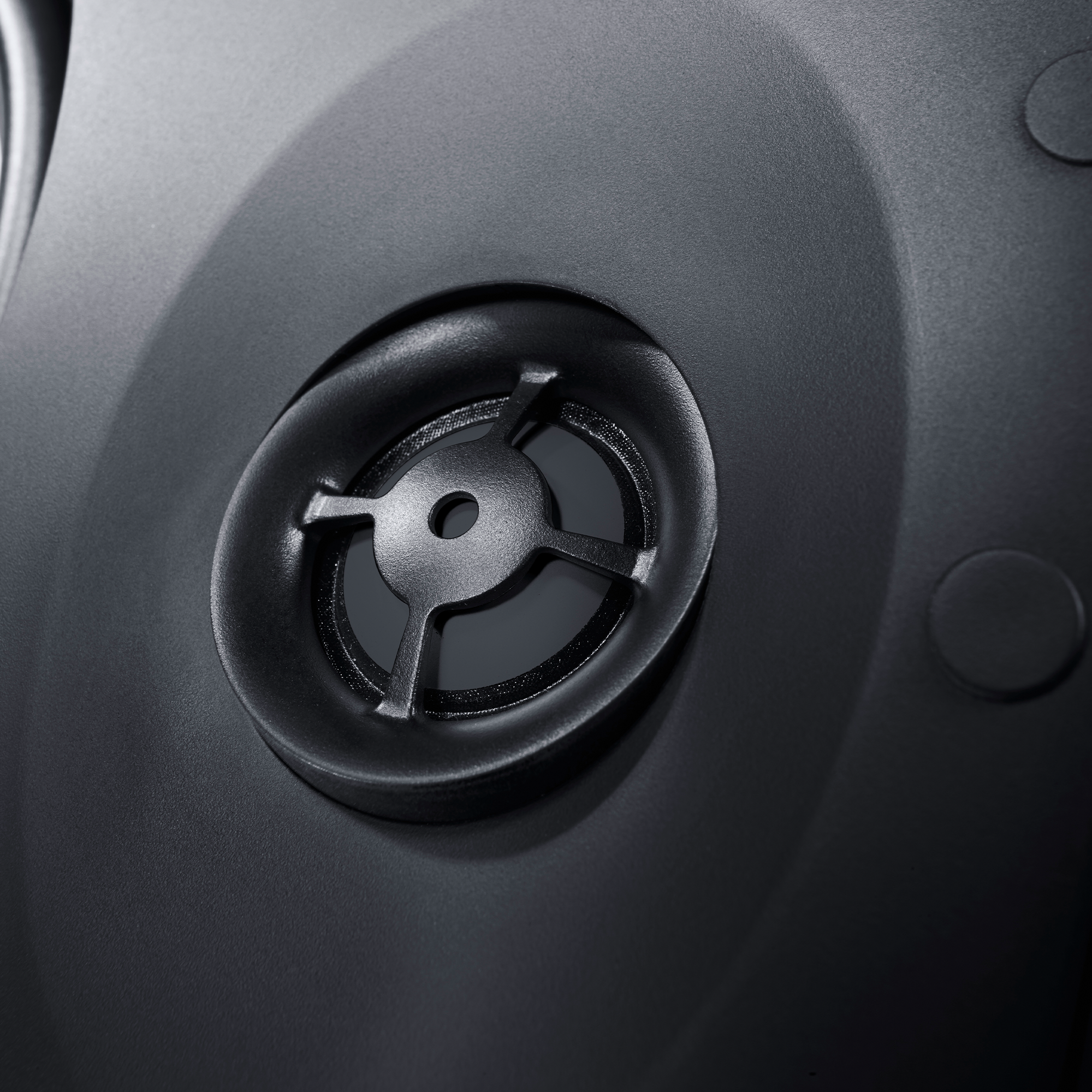 Der mittig platzierte Aluminium-Hochtöner lässt sich gezielt in Richtung des Hörbereichs ausrichten. So kann der Klang ideal an Raum und Sitzposition angepasst werden – für eine homogene Beschallung und brillante Höhen, selbst in akustisch anspruchsvollen Umgebungen.