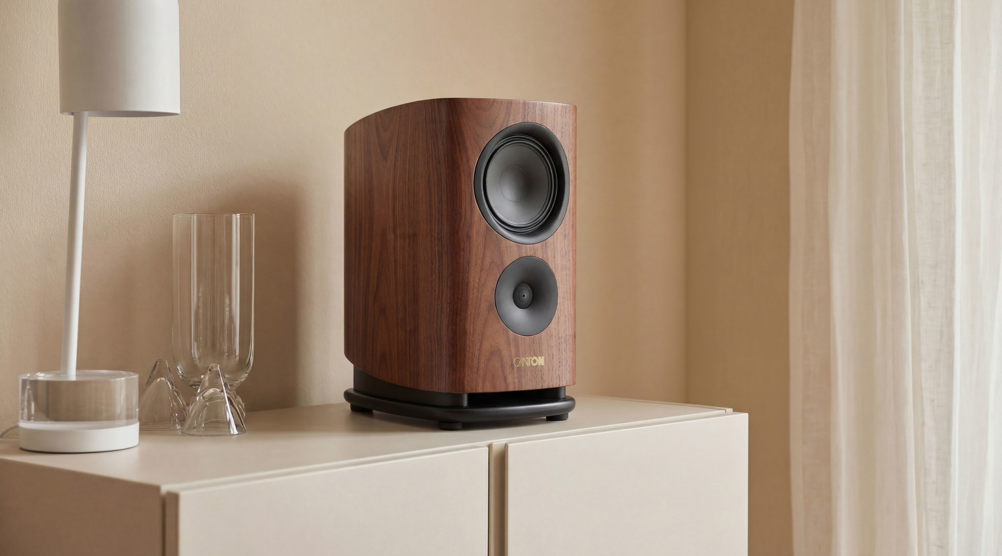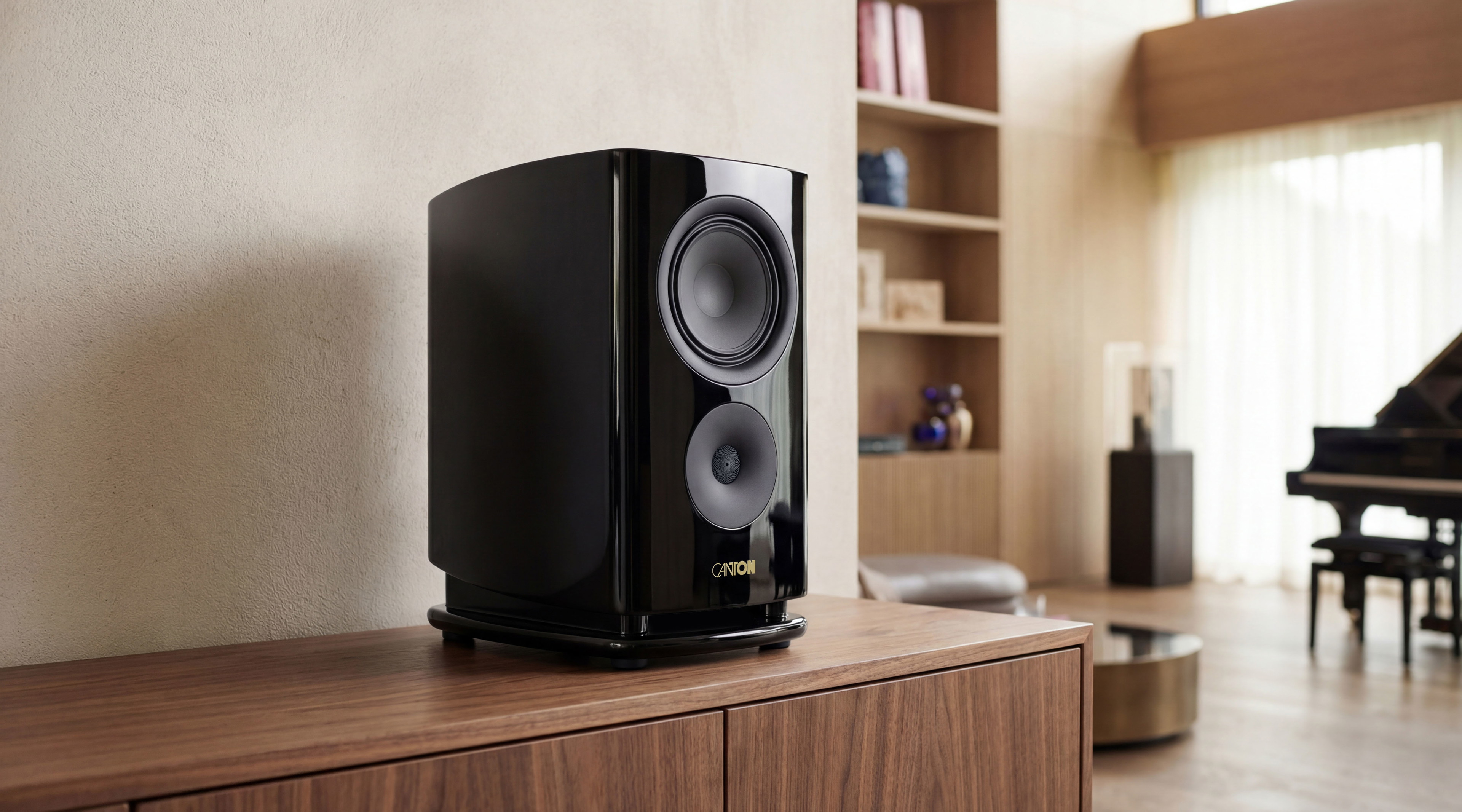 Die mehrschichtige Gehäusekonstruktion mit computeroptimierter Innenversteifung reduziert Eigenresonanzen wirkungsvoll und schafft beste Voraussetzungen für einen sauberen, kontrollierten Klang. Schwungvolle Rundungen fördern ein gleichmäßiges Abstrahlverhalten, während die flache Isolations-Bodenplatte mit schwebender Optik und CNC-gefräste, PVD-beschichtete Gerätefüße den hochwertigen Auftritt unterstreichen. Verschiedene Oberflächenvarianten und magnetische Stoffabdeckungen runden das kompromisslose GS-Gesamtkonzept stilvoll ab.